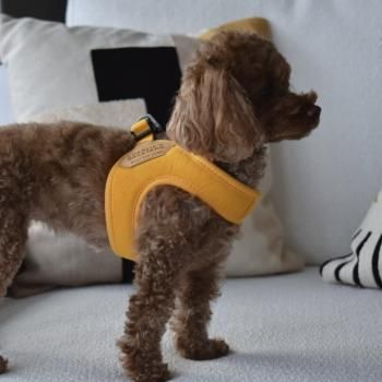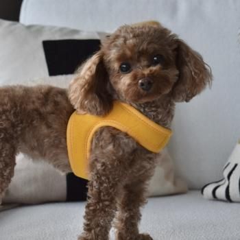 外側がフェイクスウェード、内側がメッシュで柔らかく体をホールド。脇も擦れずわんちゃんに優しいつくりとなっております。