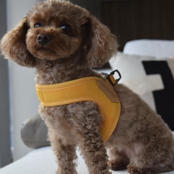バックルアップイージーハーネスは着脱、調節がとにかく簡単。 早くお散歩に行きたいワンちゃんにぴったり。