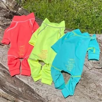 犬種や体格などを考慮したパターンと伸縮性に特化した生地で、ノンストレスのクール素材のカバーウェアーが出来上がりました。