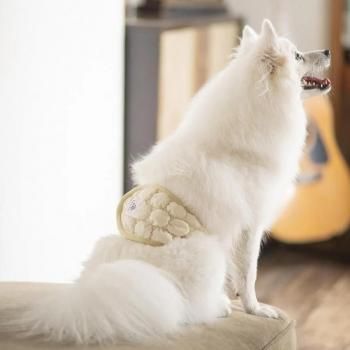 市販のペット用マナーパッドを内側のゴムベルトで固定して、腹巻きのように腰に巻き付けて使用してください。